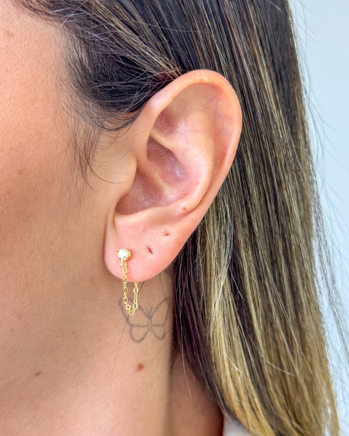 Design leve e minimalista — a corrente fina e o tamanho discreto fazem desse brinco uma peça versátil, ideal para quem prefere acessórios sutis e elegantes.