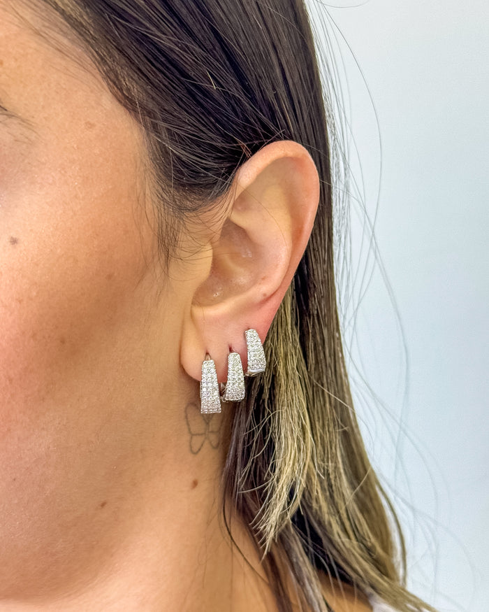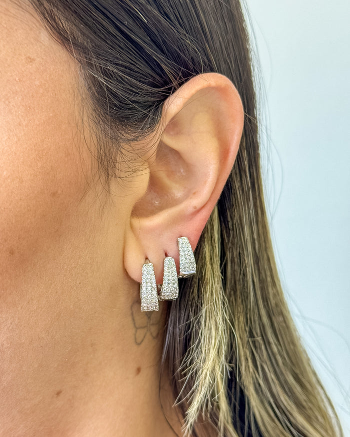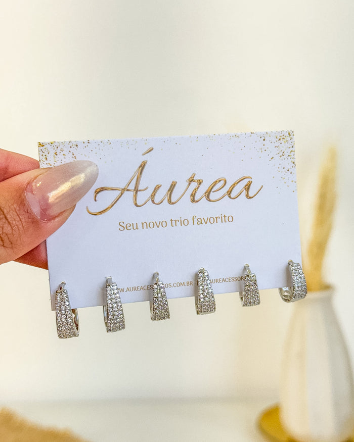Versatilidade e praticidade — o kit com 3 argolas permite diferentes combinações: use-as individualmente para um look discreto ou combinadas para um estilo mais marcante. Modelos em prata cravejada são frequentemente elogiados por se adaptarem a múltiplos estilos e ocasiões. Look neutro e elegante — o banho/prata e o acabamento cravejado conferem um brilho elegante e neutro, que harmoniza bem com roupas variadas e outras joias.
