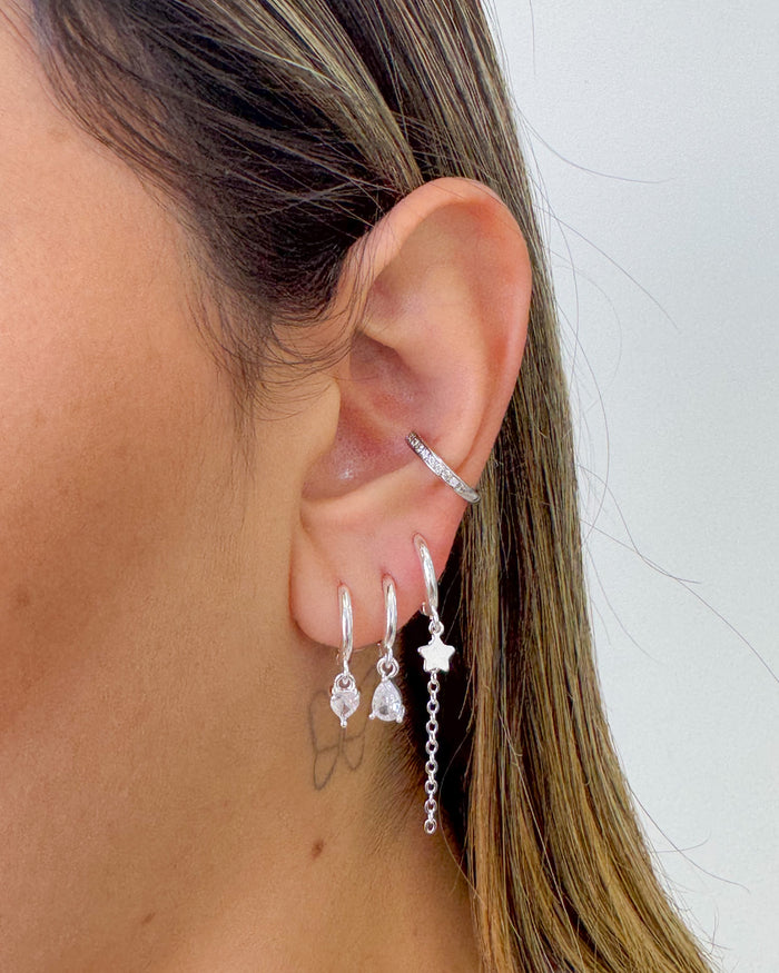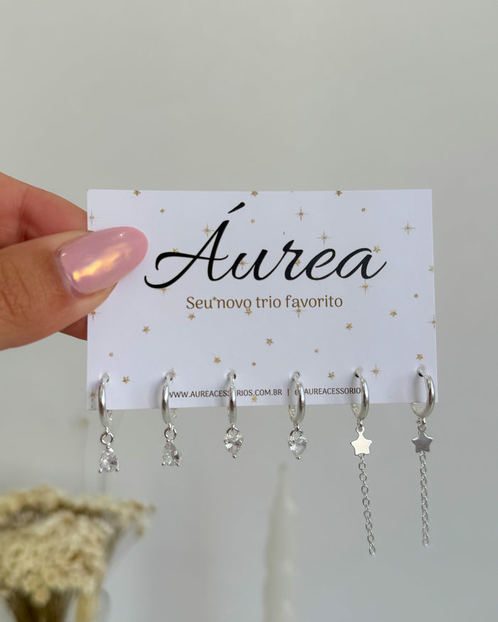 Trio de Argolas Star Corrente- Semijoia Banhado a Prata