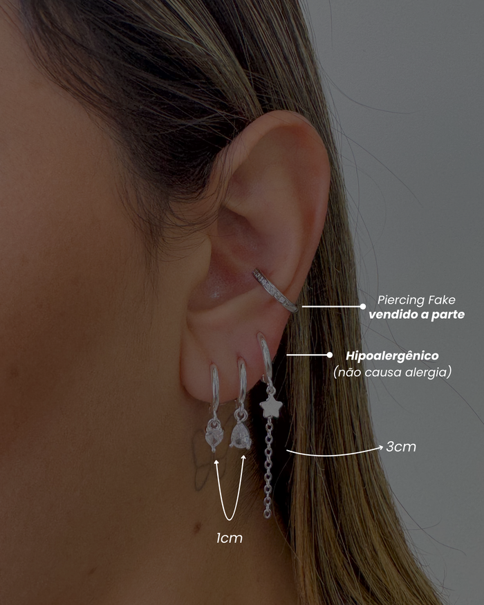 Conheça o charme e a elegância do nosso Trio de Argolas “Star Corrente” – Prata, um conjunto pensado para quem valoriza estilo e versatilidade sem abrir mão de sofisticação. São três brincos em um kit completo, com design coordenado e acabamento refinado, prontos para transformar o seu visual — seja num look clássico, moderno ou minimalista. Ideal para quem busca praticidade e elegância em cada detalhe.
