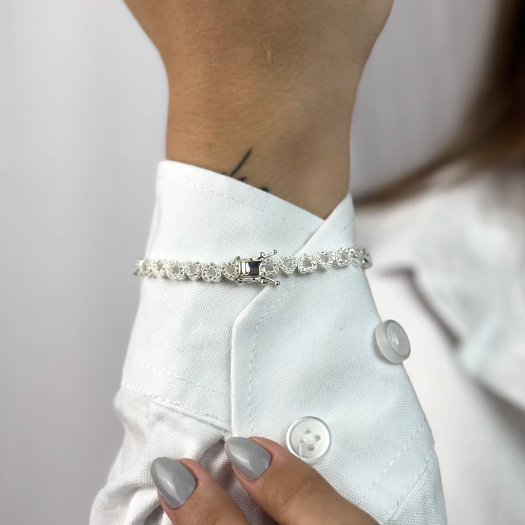 A Pulseira Riviera Corações Incolor é uma joia delicada e elegante, perfeita para quem busca sofisticação atemporal com um toque romântico. Com estrutura no estilo Riviera e detalhes em forma de coração com acabamento incolor, ela proporciona um brilho suave e refinado, trazendo charme para qualquer composição — seja no dia a dia ou em ocasiões especiais.